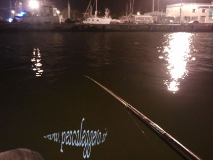 Quando sono arrivato la paranze ancora dovevano uscire e come nelle sere passate la corrente del fiume era praticamente assente, ho aperto la mia maver 88 sl 11 metri con la lenza usata sabato sera e mi sono messo bello bello, per stare in pesca bastava un solo BB..... dopo aver calato ho iniziato la pasturazione a fionda.... questa volta le mangiate non sono arrivate.... ho avuto una bella partenza con un bel liscio, poi più niente, le paranze hanno preso il mare il fiume ha scaricato tutta la sporcizia, e la corrente ha iniziato a tirare costante tanto da mettere altri 3 BB sulla lenza.... verso l'una e mezza una bella partenza..... sta volta la ferrata è andata a buon fine e il pesce tirava bene bene verso monte...... la canna lo ha stancato insieme al filo che usciva con l'anti-ritorno aperto...... piano piano è venuta in superficie, il coppo in acqua pronto.... ma proprio quando è arrivata a un metro è ripartita forte sempre verso monte....... tempo due minuti stremata questa volta è finita nella rete....  Eccola nel secchio, 8 etti......
