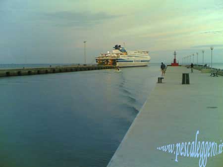 uscita sulla scogliera del porto di Ostia sono arrivato alle 18:00 il mare era quasi calmo ogni tanto arrivavano delle onde più alte che mi hanno fatto il bagno, mi sono fermato prima della punta del molo nord e ho pescato all'inglese, la lenza da 5+1 finale del 0,12, amo del n°16. A causa della risacca non si pescava bene, comunque tre pesciotti per un 1,5 kg nel cerignolo li ho messi.