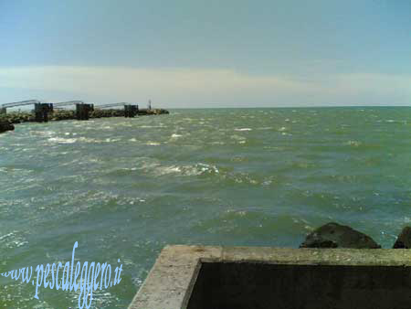 uscita sulla scogliera del porto di Ostia sono arrivato alle 18:00 il mare era quasi calmo ogni tanto arrivavano delle onde più alte che mi hanno fatto il bagno, mi sono fermato prima della punta del molo nord e ho pescato all'inglese, la lenza da 5+1 finale del 0,12, amo del n°16. A causa della risacca non si pescava bene, comunque tre pesciotti per un 1,5 kg nel cerignolo li ho messi.