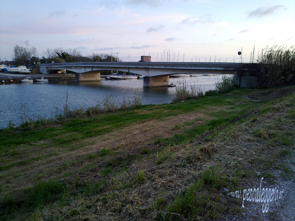 Oggi avevo proprio voglia di mettere la lenza ammollo, anche se sapevo che il vento sarebbe stato inclemente sono partito lo stesso, scogliere, no no....... porti, no no...... Direzione ponte della scafa sapevo che avevano pulito la sponda e piu di qualche volta passando sul ponte ho visto gente a pesca, quando sono arrivato c'era un signore che pescava a ledgering e devo dire che ci avevo fatto un pensierino...... ma volevo vedere il tappo andare giù........... per arrivare è cambiato un pochino perche hanno messo una sbarra, perciò si può passare solo a piedi oppure si fa il giro con la macchina.....( GMaps )