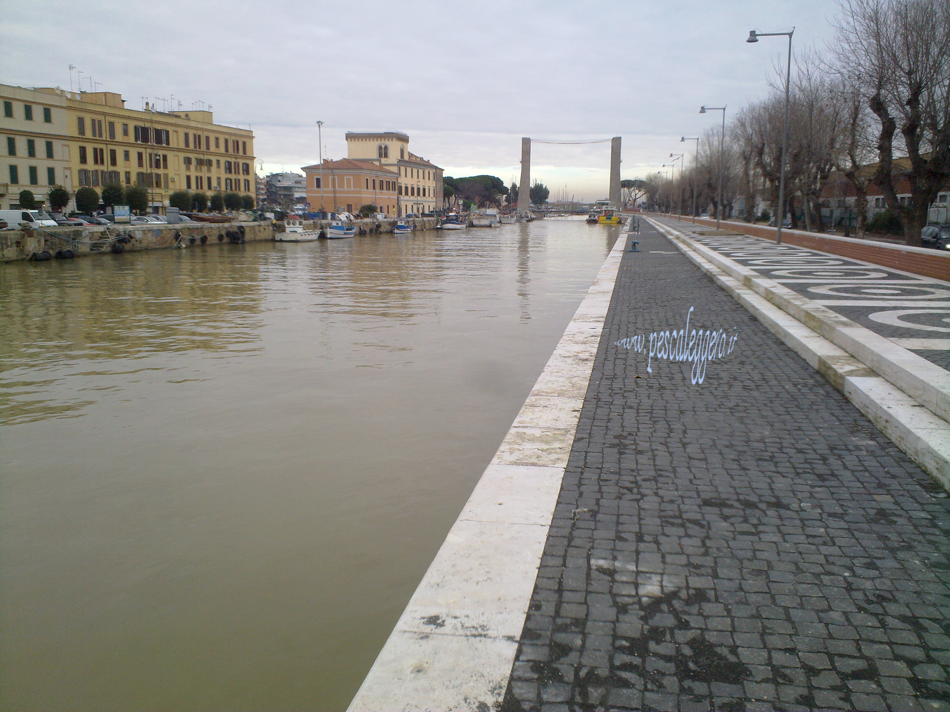 Si ieri c'era vento e sapevo che il Canale sarebbe stato mosso...ma ho voluto comunque provare, arrivato a Fiumicino mi sono diretto verso la torre dei piloti per vedere la situazione, quando sono arrivato come ho aperto ho sentito il tombino sbattere e ho capito subito che non era aria, per chi non conosce Fiumicino il tombino si trova sulla banchina è chiuso, ma quando la risacca pompa si solleva di un centimetro e poi cadendo sbatte, allora ho pensato di andare a vedere lungo fiume dove ci sono le paranze, e li la situazione era migliore ma comunque la risacca era sempre presente, un caffè e una sfogliatella all'Old River, e ci sarebbe stata solo una soluzione per calare le lenze appena sotto al ponte.....mi sono diretto li e dopo aver gironzolato un po ho trovato il buco tra le barche che mi andava a genio.....