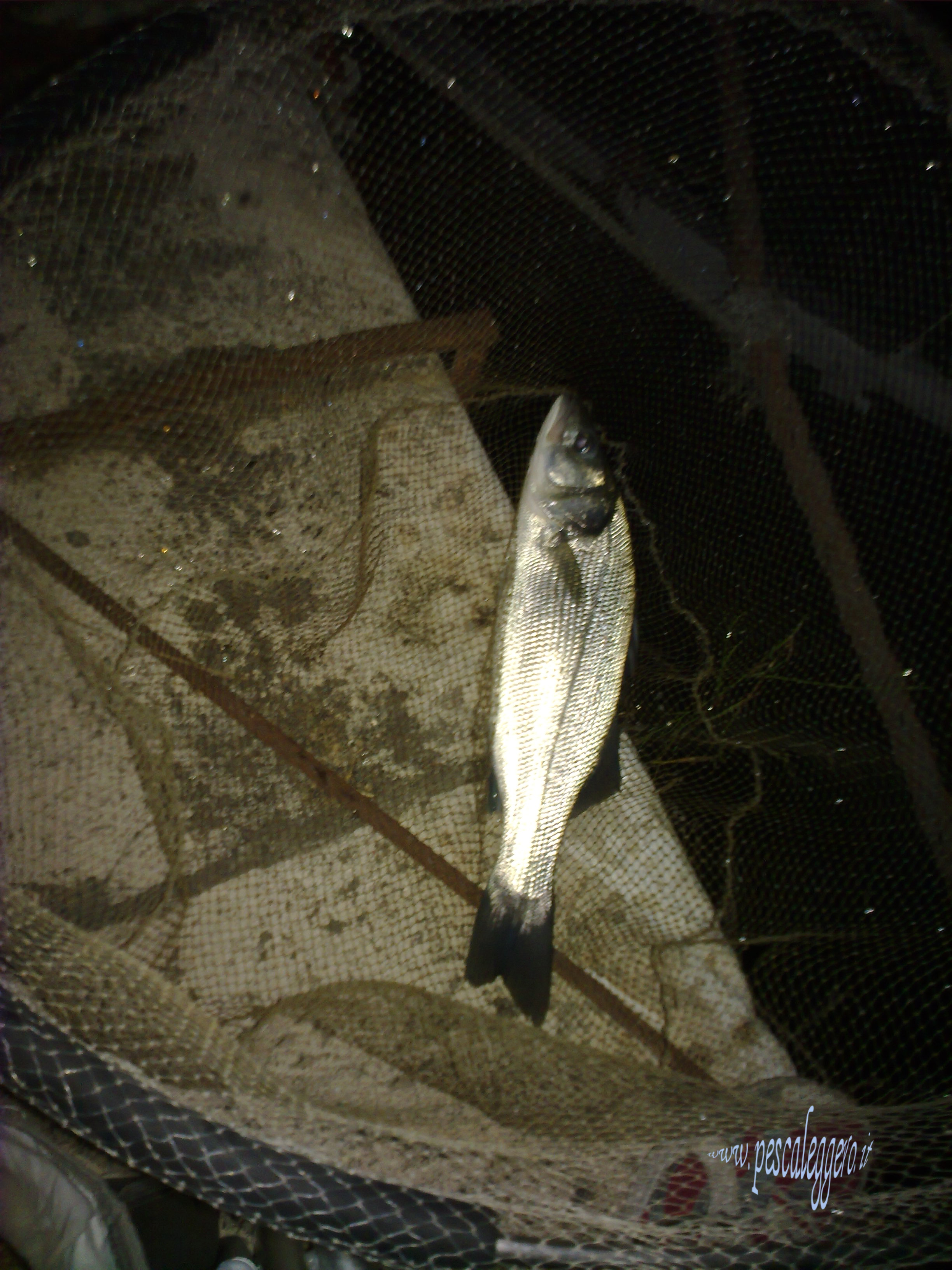 Dopo aver aperto ho controllato che il fondo era come lo conoscevo cioè, con una leggera pendenza a salire verso la foce....ho sondando e giù in pesca, dopo una mezz'oretta mi parte il tappo, avvolte accade prima e mi è capitato di prendere quella che sta li sotto ad aspettarmi....e rimasta ferma e saliva piano piano non era male ed è andata nel secchio 4,5 etti....poi ho ricalato e zaccc un altro pesciotto più piccolo slamato e liberato.....poi per una mezz'ora abbondante niente, qualche pescatore è passato per rendersi conto di come andavano le cose, ogni tanto sia sopra che sotto di me qualche pesciotto  usciva, ma il mio tappo era bello stampato li e non si muoveva........poi un sussulto e una partenza........anche a me una piccoletta partita al centro del fiume..........slamo innesco ricalo.....manco un minuto un altro sussulto del tappo e affonda deciso.....ferro e mi parte con due tirate verso foce....un altra....piccola, penso dentro di me.........ma, si ferma e rimane li.....non si muove più....tappo fermo non sale ....anzi si appunta di brutto sotto...va verso monte...poi prova ad uscire....il tappo sta 50-60 centimetri fuori dell'acqua....non va più in la di 15 metri dalla banchina...anzi viene sotto, ma nel venire sotto riesco a prendergli una metro abbondante.....il silenzio regna sovrano, il mulinello non trilla più è uno spettacolo, ma si sente l'attrito della frizione quando punta sotto e cede qualche centimetro.....Marchetto con il quale abbiamo pescato qualche volta questa estate mi dice te la coppo....gli rispondo vedremo se ci riusciamo.....intanto la ragazzina cerca di trovare un ostacolo e si fa 10 metri di banchina a salire.....ma comincia a cedere un po di filo e sale......sale sale....e adesso sembra mollare e va in corrente, passa proprio sotto a 5 metri dal muro.....sale ancora, si fa vedere, Marchetto che aveva il coppo in mano e dice "Ahoooooo è bella"...penso..... si è veramente bella, ma manco il tempo di apprezzare il suo colore argento....che riparte sotto, non è più cosi forte, prova ad andare sotto, ma non ce la fà........molla di nuovo e da una scodata a galla, e sparisce sott'acqua, il coppo in acqua....ma è lontana....cambia direzione e viene sotto, andando a corrente viene piano piano verso il coppo dove la lascio entrare mollando la lenza..............per paura di rompere il coppo  scende sulla scaletta con il coppo perpendicolare all'acqua, la rete e piena....scendo anche io e mi inginocchio per prendere il cerchio del guadino .............ma mamma che bella lunga lunga ......