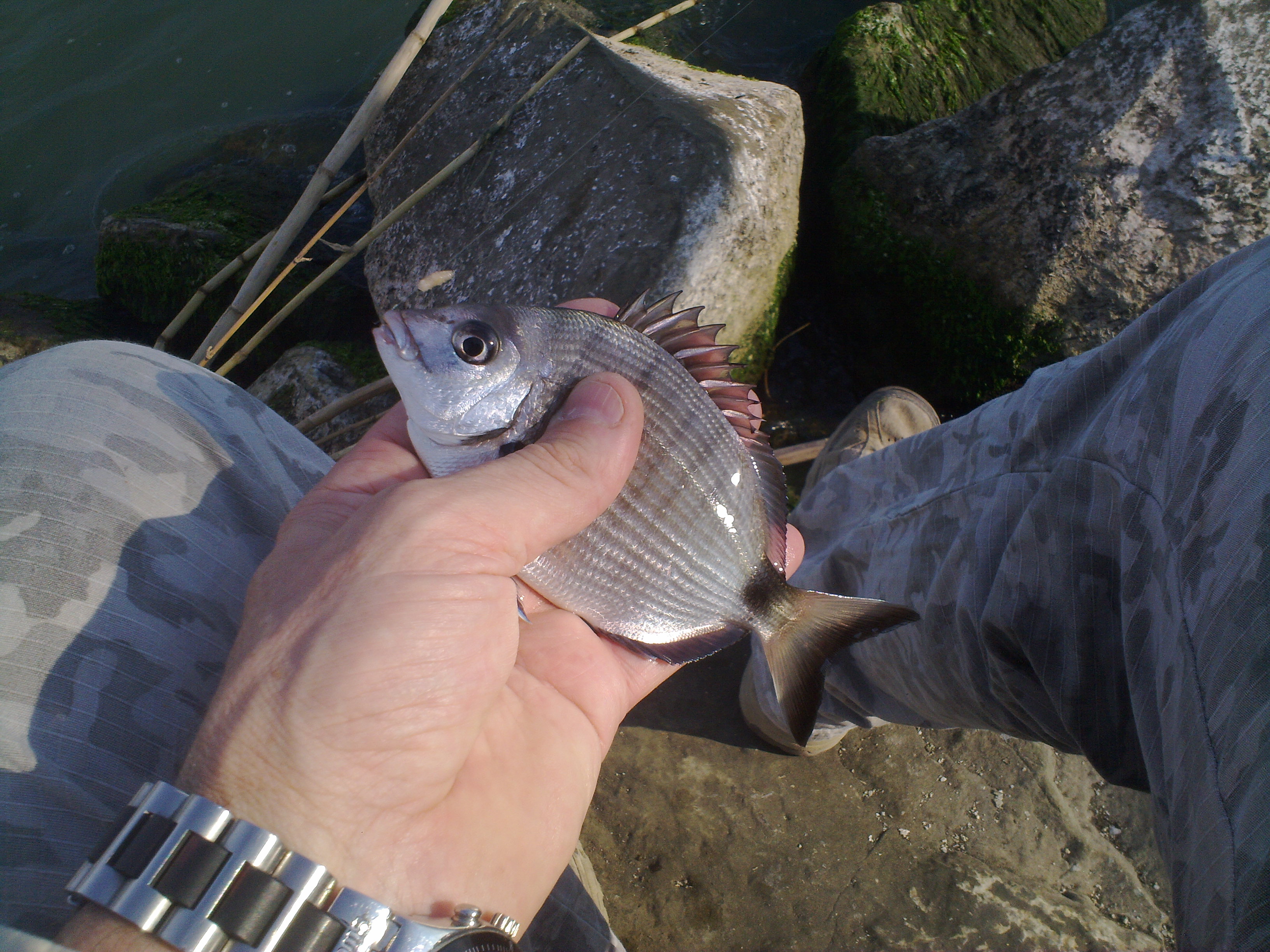 Per pasturare dovevo salire sulla paranza e andare a buttare la ciccia sulla poppa dell'altra proprio dove il mio tappo era posizionato una bella giostra.....ma ha pagato infatti in molti non stavano prendendo niente, invece dopo una mezz'oretta.....zacc........il tappo è andato giù... pescavo almeno una decina di metri fuori dalla punta della canna perciò accorciavo tale filo e ferravo.....be erano le solite gnagne....in compenso che ho fatte 4 tutte rilasciate....alle 2 ho chiuso e me ne sono andato a ninna......