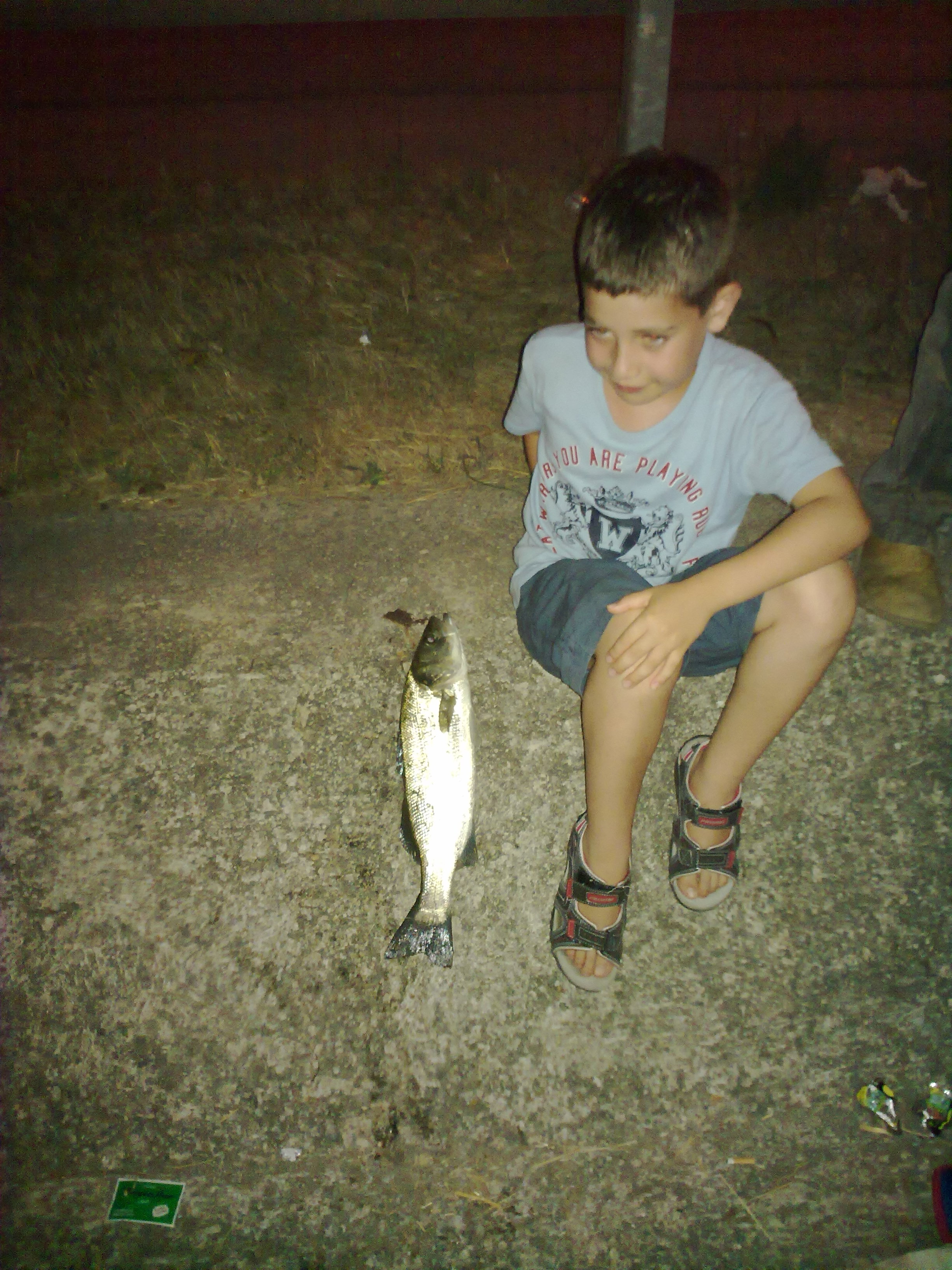 Mi sono messo in pesca e le prime due orette sono passate tra una serpente e un altro, nel frattempo si mette una leggera risacca, visto che si prendono solo serpi decido di allungarmi e porto il tappo verso la chiglia della paranza sotto.... mi fermo ad una metrata....e subito parte il tappo.....e arrabbiata e tira sotto, la stoppo senza pensarci un attimo e allora parte fuori......ma ormai è cotta e la più piccola della foto è finita nel coppo, slamo mi pulisco le mani metto il bigos....e giù in pesca nello stesso punto.....non passano manco 5 minuti e zacccccc....va giù.....sta volta era più bella calma piano piano la porto a galla e dentro coppo.....mi rimetto in pesca......e non vedo più niente, alle 04:30 riparte il tappo, ma è una gnagna de 3 etti che rilascio.......dopo poco chiudo e me ne vado....ecco il risultato.....