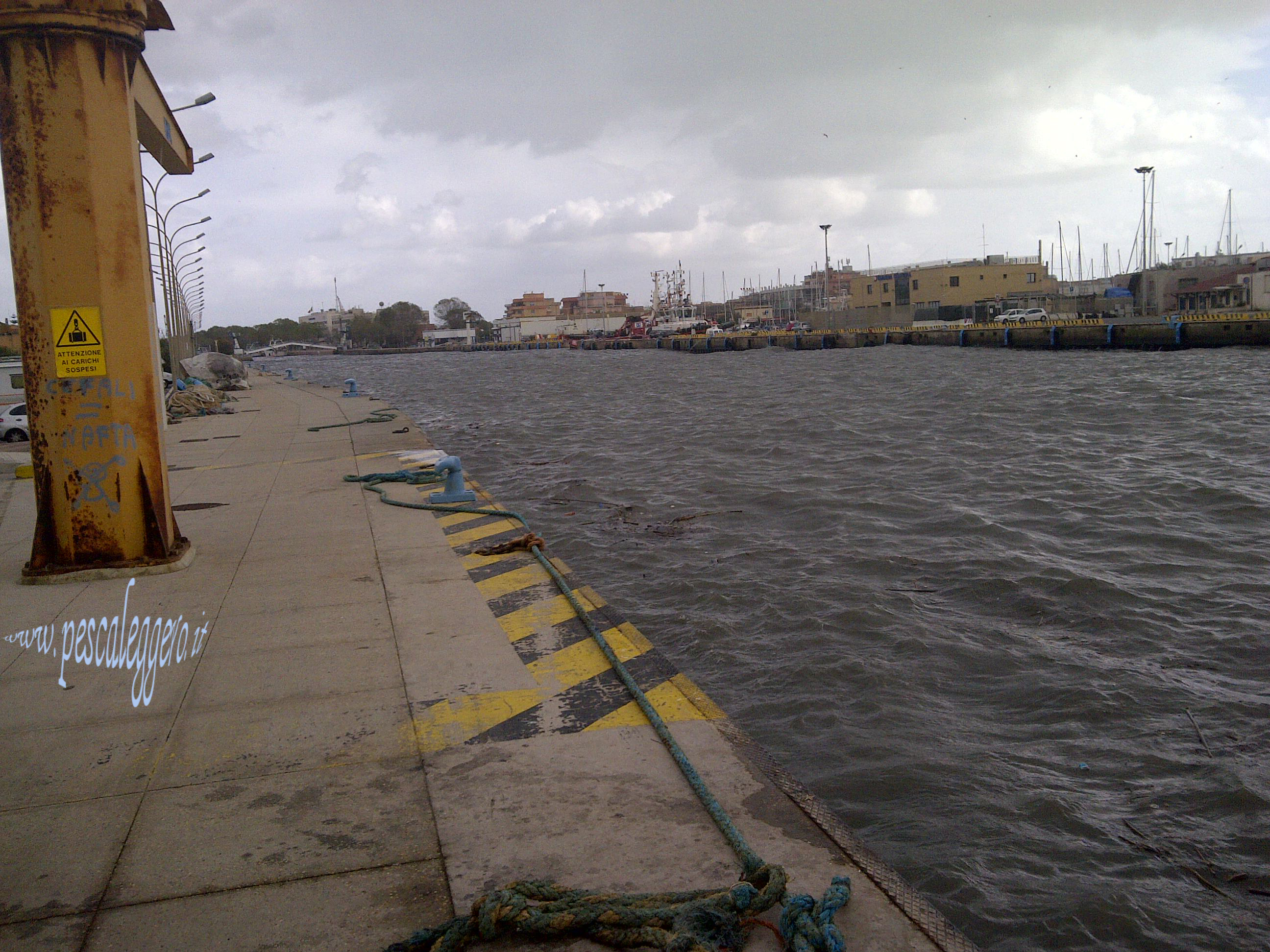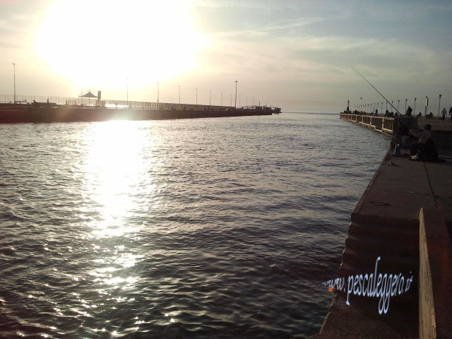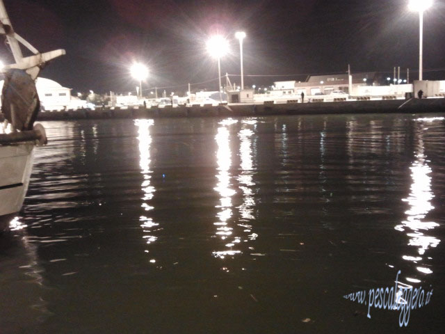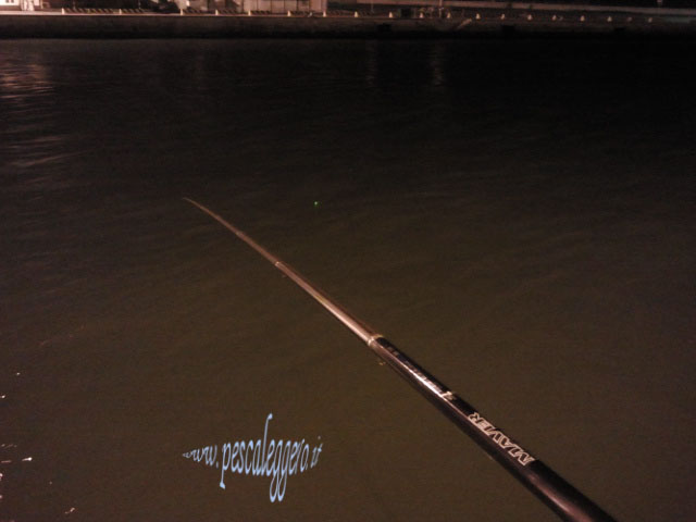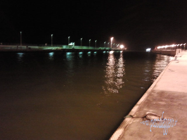 Molti amici già erano in pesca lungo la banchina e la serata si prospetta proprio bella bella, ma io devo ancora passare la mia giornata di lavoro...... Passate le mie belle 9 ore di aeroporto, stacco alle 0230, sapevo che qualche amico era in pesca e allora decido di passare a vedere, penso, magari mi viene voglia e rimango un po.... Percorro la strada che costeggia la banchina e tra le barche vedo che non ci sono moltissimi pescatori... arrivo in prossimità della gruetta e mi fermo....