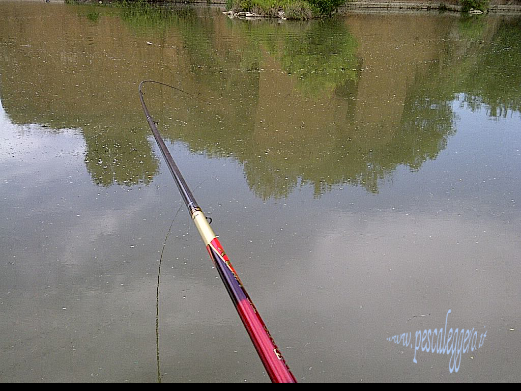 Non si vede muovere niente, le provo tutte, aumentare il fondo, niente.... allora mi stacco fino ad avere un palmo in più di acqua.... niente.... come si dice se una passa razzola nella pastura a terra, sondo sul pallino e tolgo 10 centimetri di acqua, questa sarà l'ultima prova ormai è già tardi....ma ad un certo punto il tappo si muove..... un sussulto.... eccola..... di nuovo lo starlite va appena appena sotto.......... ferro il pesciotto c'è sta li fermo, quasi quasi sembra un serpe perché sale piano... poi parte allora non è un serpe...... prendo il coppo e galla floppppp dentro...