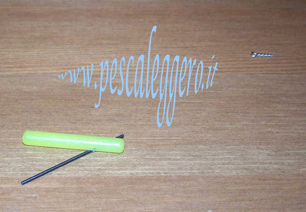 Preparare l'anellino e tagliarlo alla lunghezza necessaria.................tagliamo l'astina sopra il foro a 6 mm e infiliamo lo scobidoo...........per lo starlite................