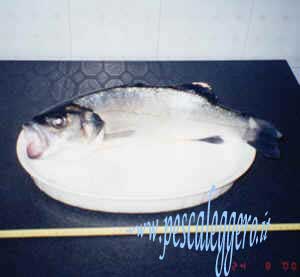 Normalmente io pesco con una 11 mt, originariamente era una fissa che è stata modificata, cioè e stata sostituita la vetta con una cava tipo bolognese e montata con gli anelli la cui misura e forma è quella che si usa per montare le canne da tremarella. Questo non significa che non si può pescare con la 7mt. o la 8mt. anzi la spigola che vedete qui in basso è stata catturata proprio a Fiumicino con la 7mt. perché avevo la 11mt. a sostituire gli anelli.
