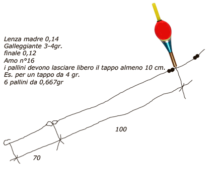 in quei luoghi dove la presenza di pastura naturale è garantita da l'azione del mare o dalla presenza di prede per i predatori. Spiagge miste a scogli sono da preferire. Proprio in questi luoghi l'azione del mare crea quel brumeggio che attira i pesci (spigole), che nella particolare condizione che si crea dopo la mareggiata (scaduta) possono cacciare. Negli stessi luoghi in condizioni di mare calmo si avvicinano quelle specie che si cibano rompendo le valve dei molluschi ed in tale condizione possiamo tentare con tecniche leggere ed esche mirate. Questo tipo di pesca viene praticata con la tecnica di pesca che prevede l'uso di gallegianti di tipo inglese che dovranno essere usati con canne di lunghezza diversa in funzione del luogo e forza del mare.L'uso di un canna corta (5 mt.) può dare velocità e semplicità nell'azione di pesca, ma in presenza di onde è sicuramente più pratico l'uso di un canna più lunga che permette di tenere la lenza fuori dall'acqua e di controllarla in presenza di corrente. La profondità dell'acqua sarà sicuramente tra 1 mt. e i 3 mt. perciò il tipo di montatura sarà tale da garantire un movimento naturale della lenza. La pesca dalla spiaggia è tra le tecniche di pesca con la bolognese quella che richiede condizioni meteo molto particolari, mare in scaduta, vento da moderato ad assente e acqua torbida di colore verde, sembra impossibile, ma sono le condizioni tipiche della scaduta che ci permetteranno di catturare pesci importanti.